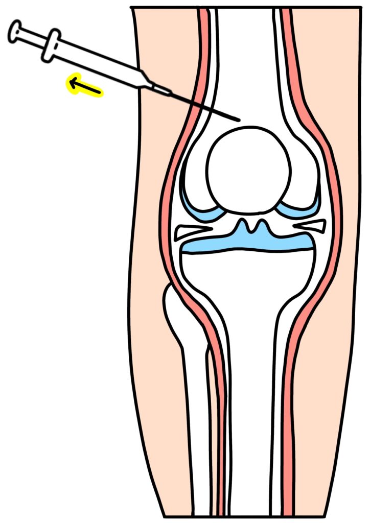 膝の中で炎症が起きると体が膝を守ろうとして関節液を過剰に分泌し